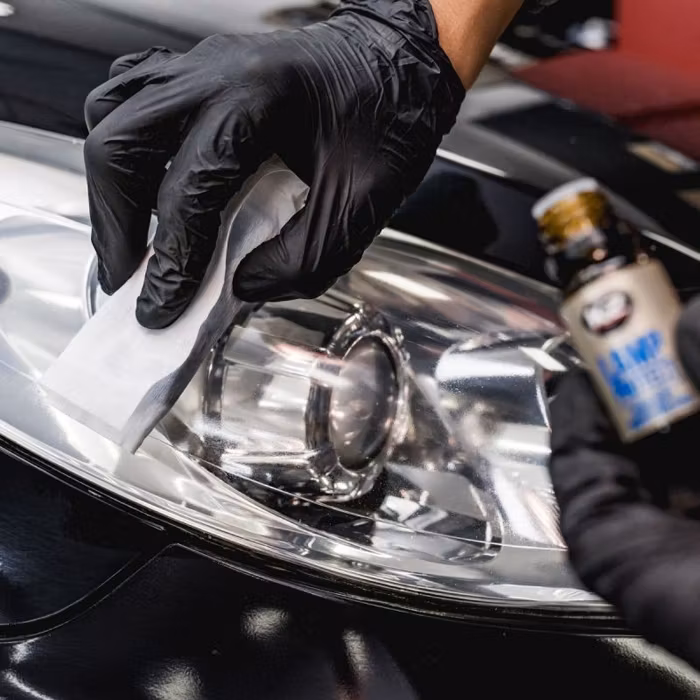 2. Vid skadade strålkastare, polera lamporna med K2 Doctor Lamppasta före applicering och avfetta sedan ytan med en K2 T6 Klinet-borttagare.