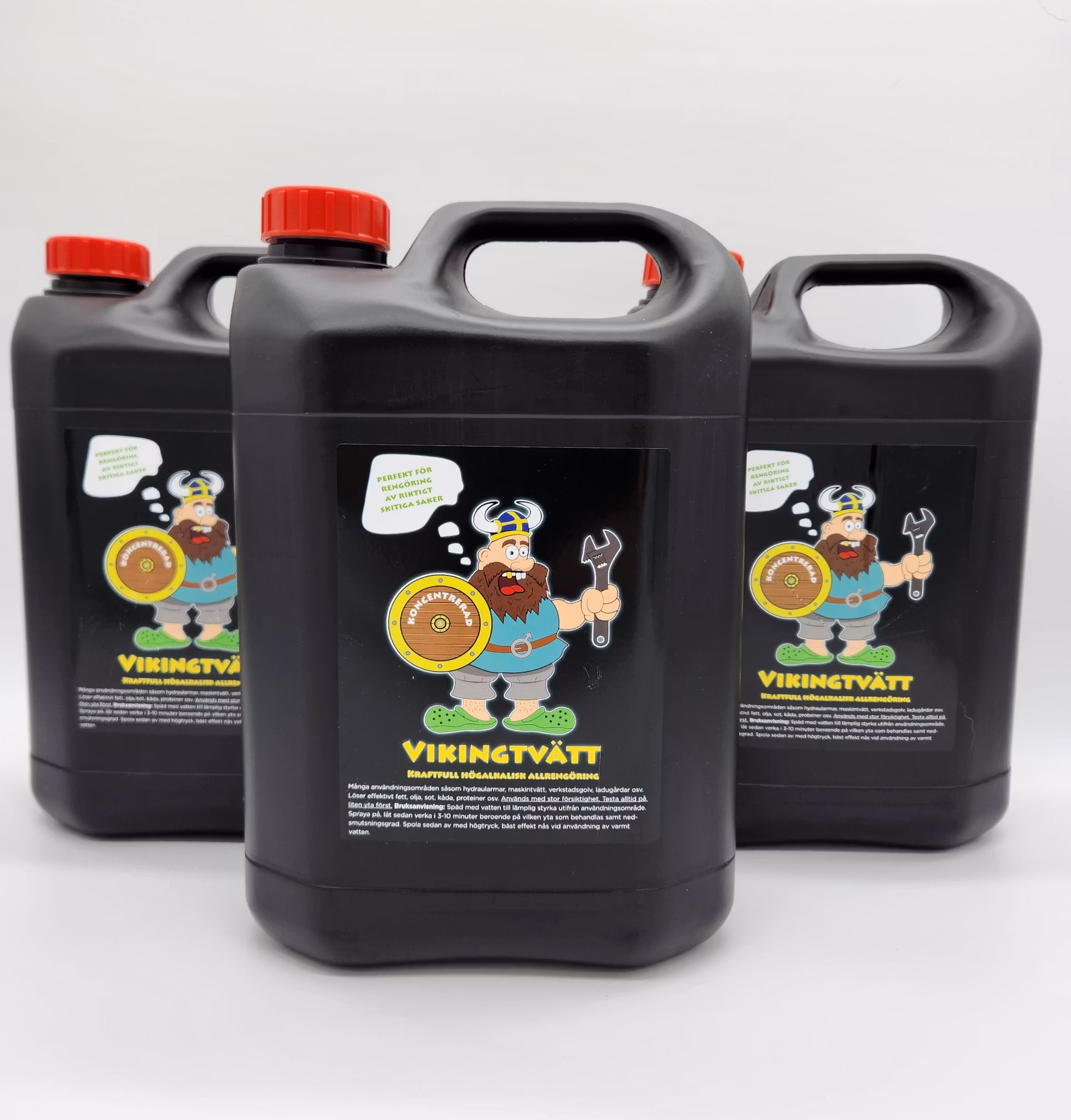 Vi kan stolt presentera vårt egna högalkaliska allrengöringsmedel VIKINGTVÄTT!